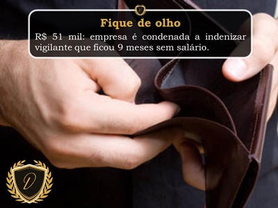 Manaus/AM - Após a declaração de rescisão indireta do contrato de trabalho, a empresa Vigilância e Segurança da Amazônia (Visam) foi condenada a pagar R$ 51 mil a um funcionário que ficou nove meses sem receber salário.
